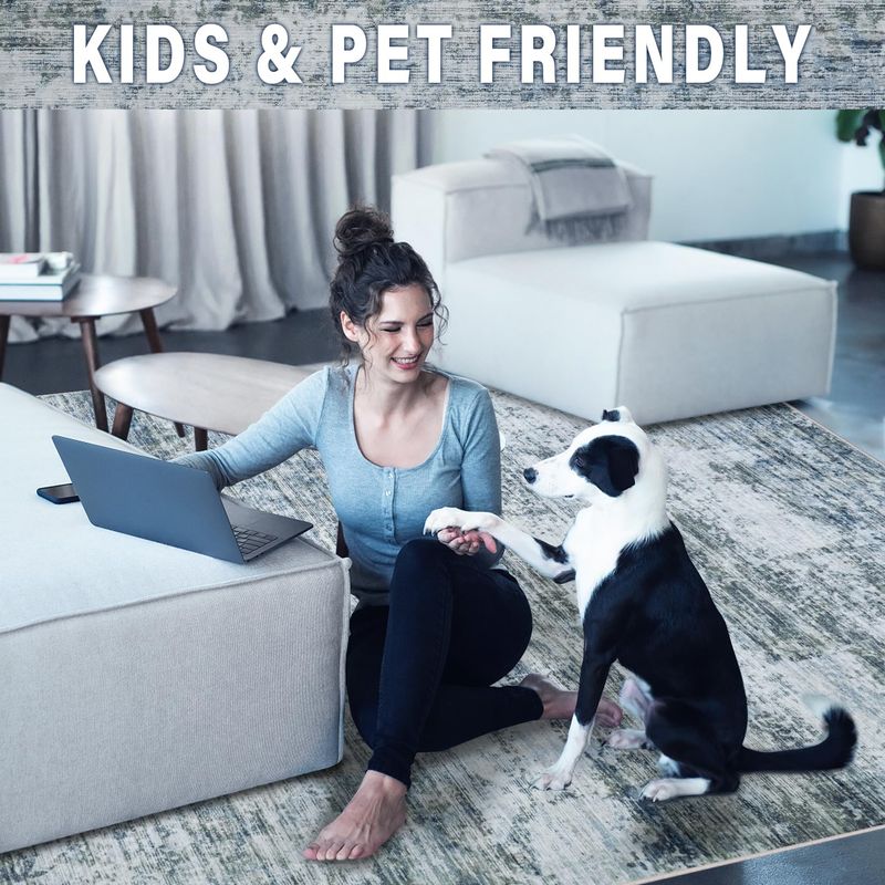 Alfombras de área de 8 x 10 pies para sala de estar: alfombra grande lavable a máquina con parte