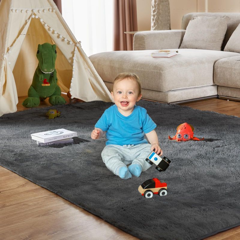Alfombras de área de pelo largo para sala de estar, antideslizante, duradera, rectangular,