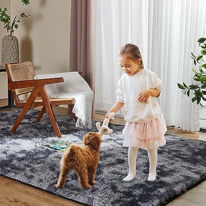Alfombras de área de pelo largo para sala de estar, antideslizante, duradera, rectangular,