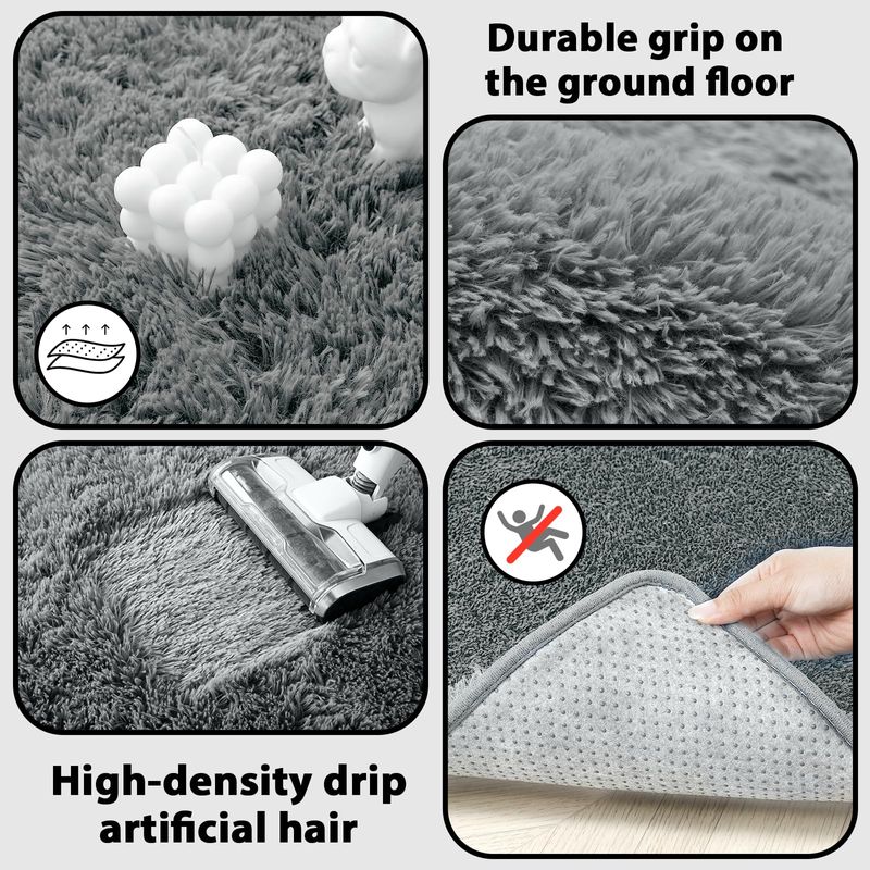 HOGARBAZARDECORACIONAlfombras de área para dormitorio, sala de estar: 4 x 6 pies, alfombra peluda de pelo largo gris