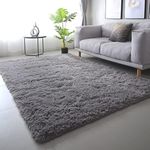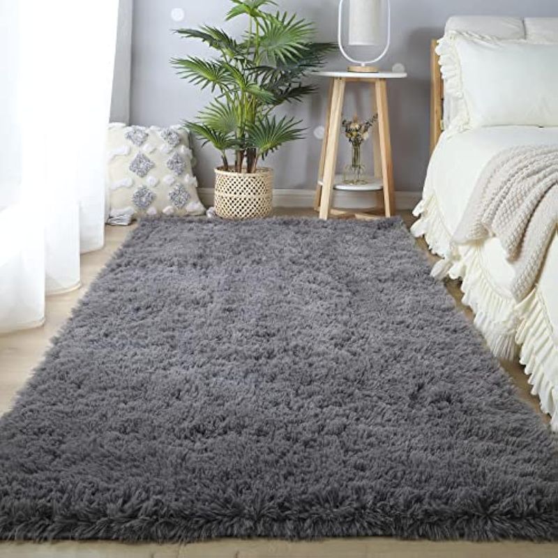 HOGARBAZARDECORACIONAlfombras de área para dormitorio, sala de estar: 4 x 6 pies, alfombra peluda de pelo largo gris