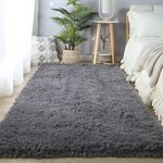 Alfombras de área para dormitorio, sala de estar: 4 x 6 pies, alfombra peluda de pelo largo gris