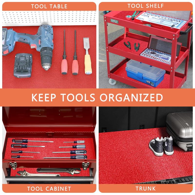 ???? Absorbe el sonido: gracias al material suave y grueso, el forro de cajón de la caja de herramientas puede absorber el sonido de las herramientas caídas, y no hacen ese sonido chillido al abrir. Vale la pena para el oído y la salud mental.