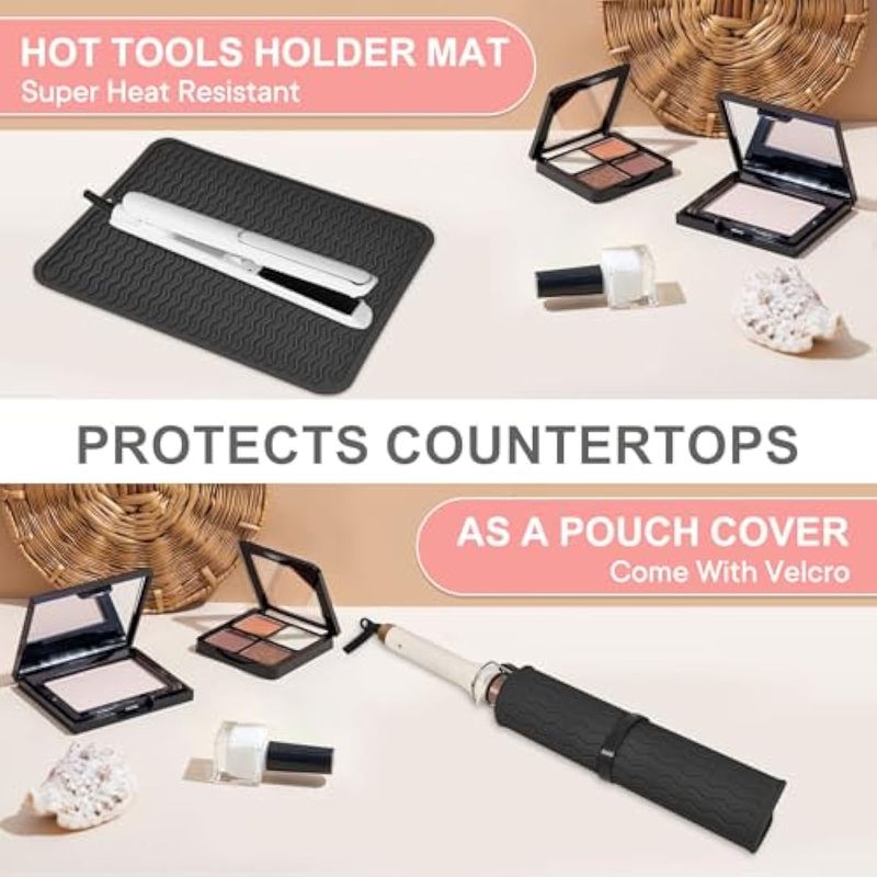 BELLEZA Y SALUDCUIDADO PERSONALPLANCHITASAlfombrilla de silicona resistente al calor, funda de viaje portátil con velcro para rizadores,