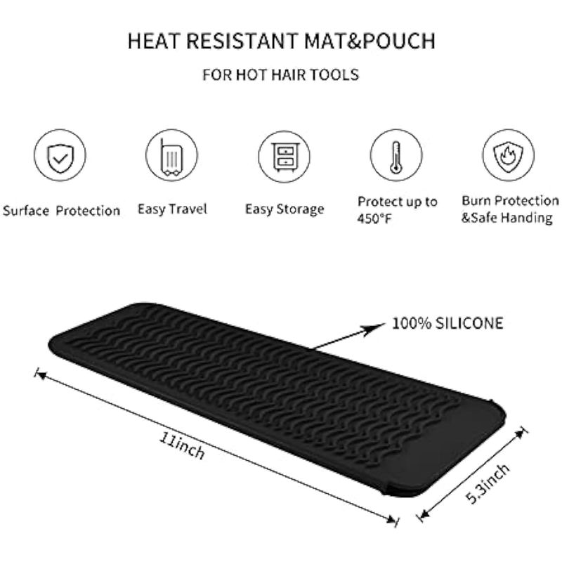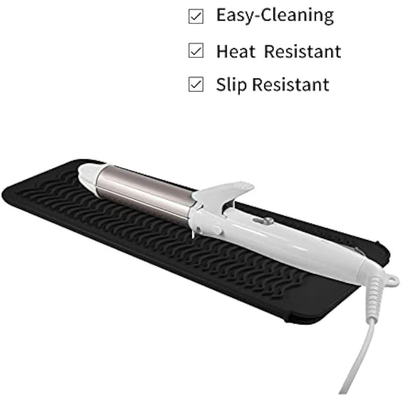 Antideslizante: el diseño único de textura de onda evita que tus herramientas de peinado se deslicen en la superficie. Tamaño perfecto 11.0 x 5.0 in para rizadores, planchas, rizadores, secadores y otras herramientas calientes.