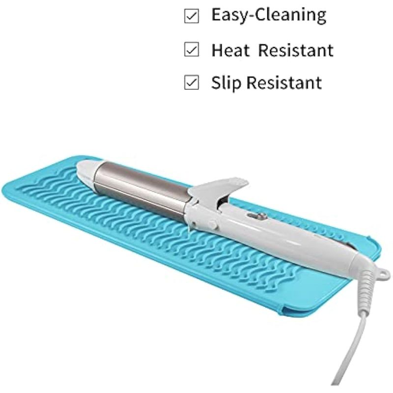 Antideslizante: el diseño único de textura de onda evita que tus herramientas de peinado se deslicen en la superficie. Tamaño perfecto 11.0 x 5.0 in para rizadores, planchas, rizadores, secadores y otras herramientas calientes.