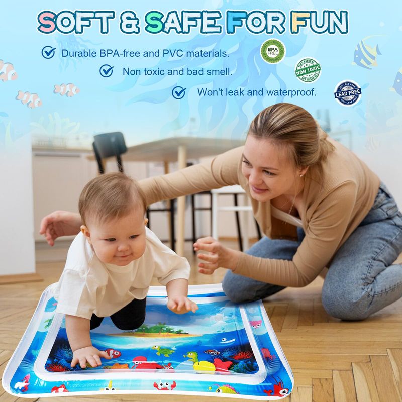 [100 protección y calidad confiable] Nuestra alfombrilla de agua para el tiempo boca abajo está hecha de material de PVC suave, más tiempo de uso y es impermeable. Cada tapete de agua para el tiempo boca abajo ha sido rigurosamente probado y es 100 libre de BPA. No te preocupes por fugas de agua y fugas de aire, para garantizar que el bebé juegue sano y feliz.