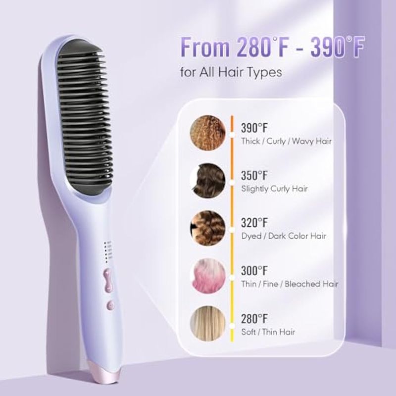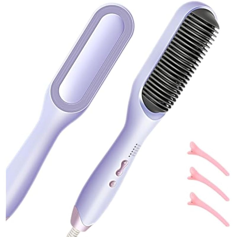 Alisador de cepillo iónico para el cabello, 5 ajustes de temperatura, calentamiento rápido y doble