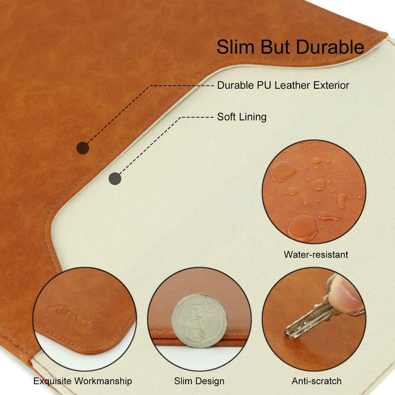 Cuero de alta calidad: hecha de piel sintética resistente al agua y forro suave, esta funda protegerá eficazmente tu portátil de arañazos, agua, café y polvo no deseados.