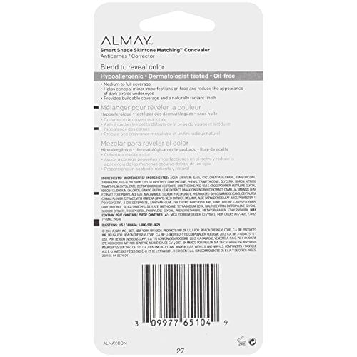 BELLEZA Y SALUDBELLEZA Y CUIDADO CORPORALMAQUILLAJEAlmay Corrector de sombra inteligente, hipoalergénico, libre de crueldad, sin aceite, sin fragancia,
