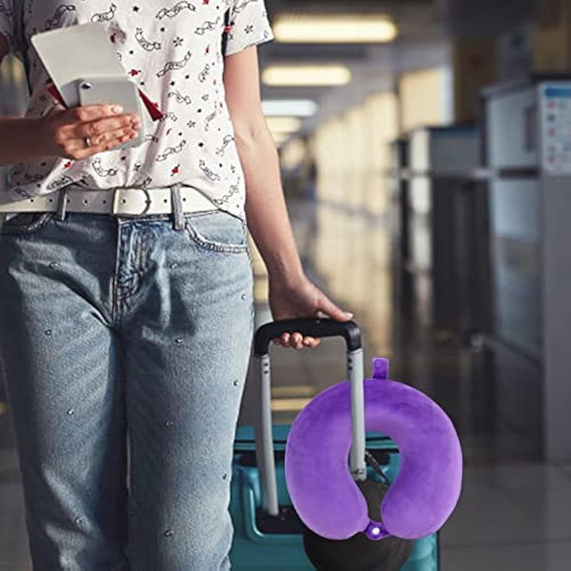 La correa elástica integrada hace que sea fácil fijar la almohada a un equipaje de mano sin ocupar espacio adicional. Ideal para viajes o para el soporte del cuello en cualquier lugar que desees.