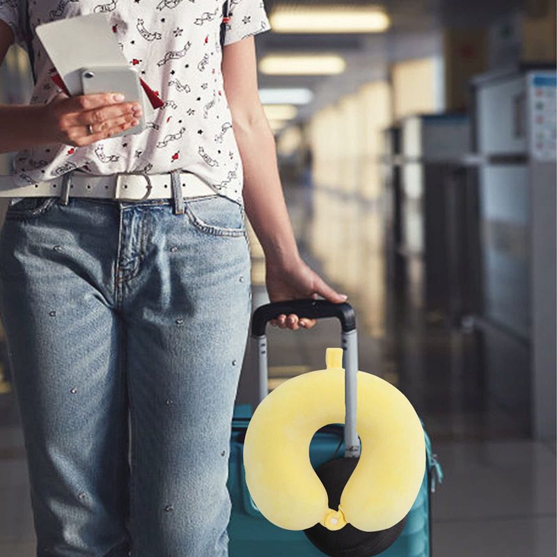 La correa elástica integrada hace que sea fácil fijar la almohada a un equipaje de mano sin ocupar espacio adicional. Ideal para viajes o para el soporte del cuello en cualquier lugar que desees.