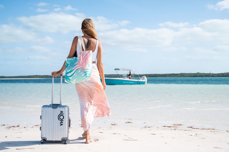 ALOHA Collection Bolsa de playa plegable a prueba de salpicaduras con cremallera superior. Bolsa de