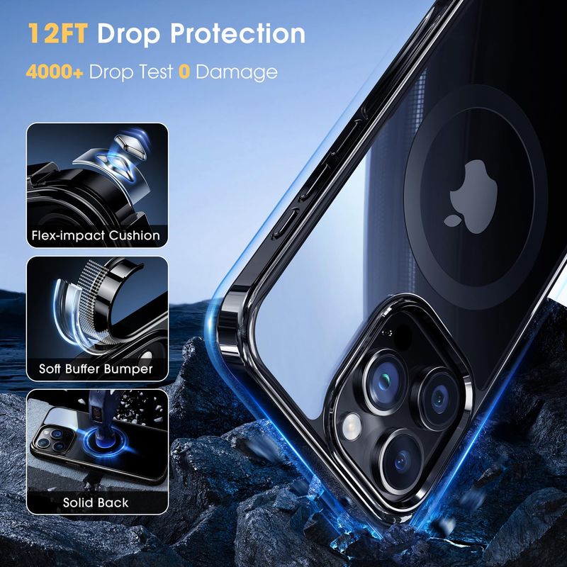 Protección de grado militar 3X: nuestra funda para teléfono soporta más de 4,500 pruebas de caída de 12 pies con el teléfono intacto. La estructura de doble amortiguación, absorbe la friolera del 98 de la fuerza de impacto durante las caídas. Tanto la cámara como la pantalla están completamente protegidas.