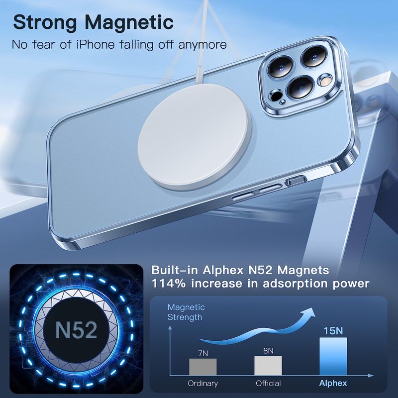 Potencia magnética sin igual: mejorada con un anillo magnético específico de Alphex y una matriz de 36 imanes triangulares N52, nuestra funda promociona una impresionante fuerza magnética de 2855.19 gf. Esta resistencia excepcional garantiza una compatibilidad perfecta con varios accesorios magnéticos, que van desde cargadores hasta soportes de automóvil.