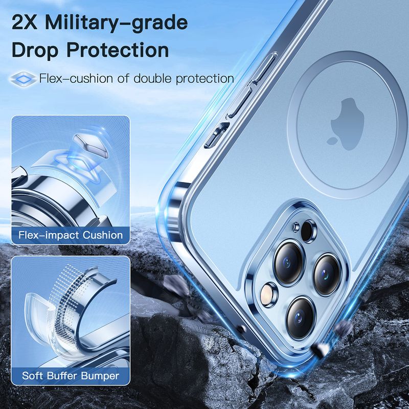 Protección de grado militar 3X: nuestra funda para teléfono soporta más de 4,500 pruebas de caída de 12 pies con el teléfono intacto. La estructura de doble amortiguación, absorbe la friolera del 98 de la fuerza de impacto durante las caídas. Tanto la cámara como la pantalla están completamente protegidas.