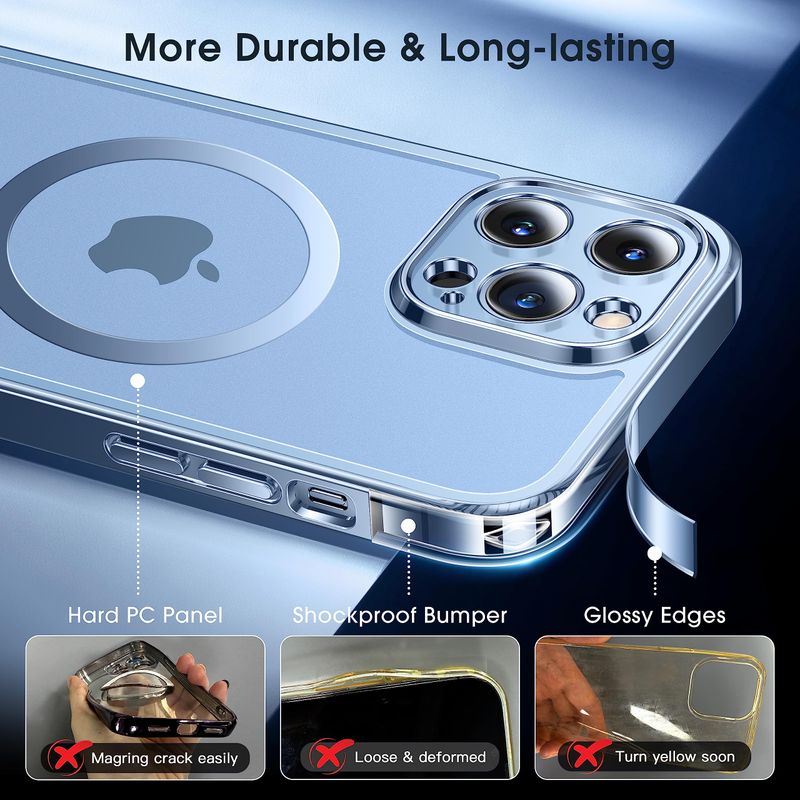 ALPHEX FUNDA OFICIAL DE COLOR PARA IPHONE 15 PRO MAX, COMPATIBLE CON MAGSAFE, NUNCA AMARILLA, FUERTE MAGNéTICA, 12 PIES, GRADO MILITAR, A PRUEBA DE GOLPES, FUNDA DE TELéFONO DE 6.7 PULGADAS, COLOR AZUL TITANIO