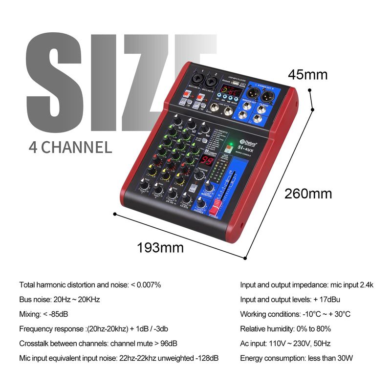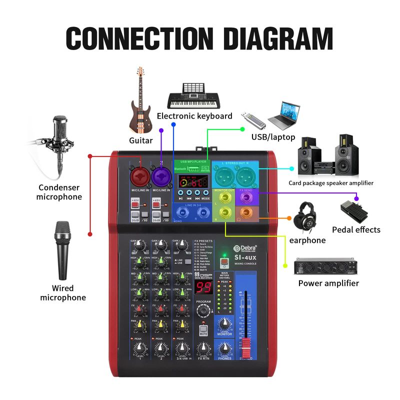 AUDIOConsola DJAlta calidad de sonido. Mezclador de grabación portátil D Debra Audio Pro con efectos digitales USB