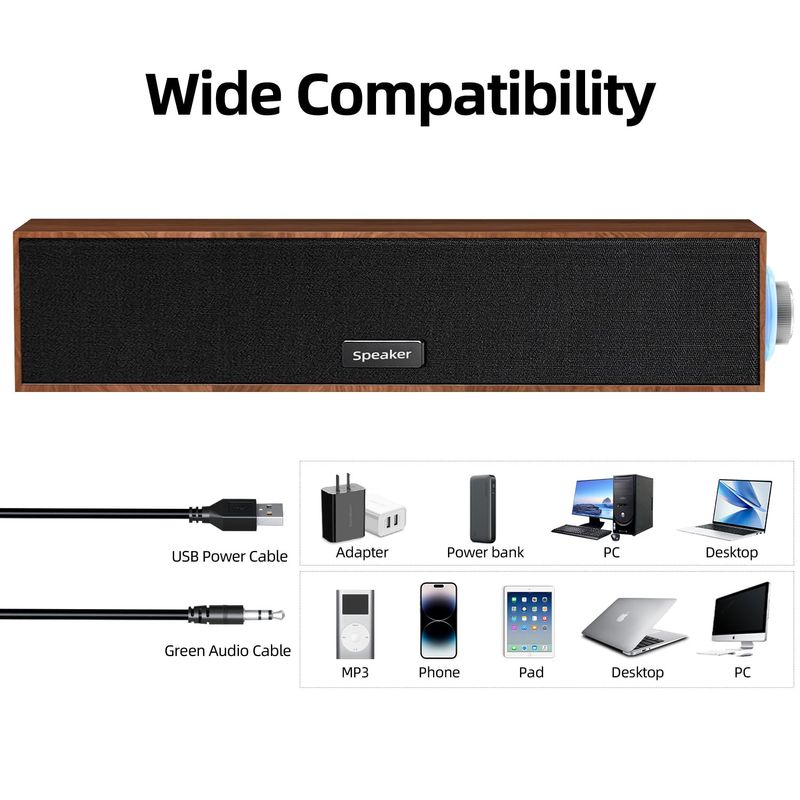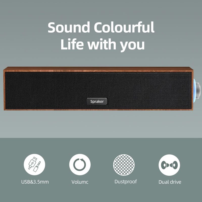 ALTAVOCES DE COMPUTADORA, ALTAVOZ DIGITAL MULTIMEDIA DE MADERA, ALTAVOCES DE PC AUX DE 0.138 PULGADAS ALIMENTADOS POR USB, SONIDO ENVOLVENTE, ALTAVOZ PORTáTIL DE BARRA DE SONIDO PARA