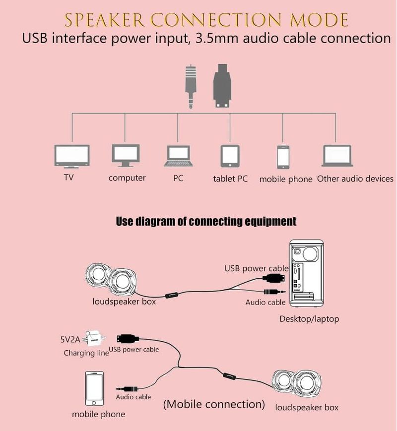 Altavoz de computadora RGB rosa juego led altavoz para PC 2.0 con cable USB alimentado por USB