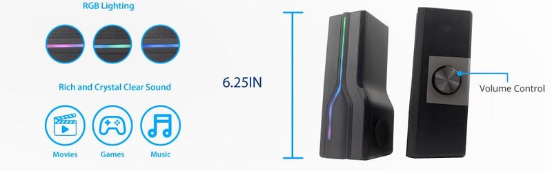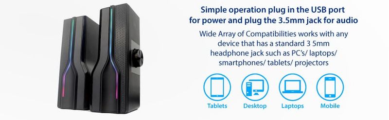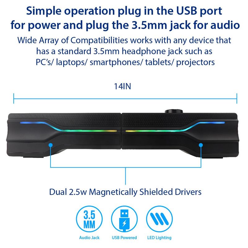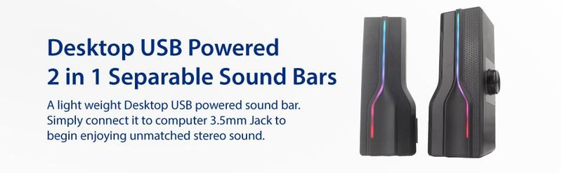 Altavoz estéreo 2 en 1 de la barra de sonido alimentada por USB de escritorio, luz LED RGB