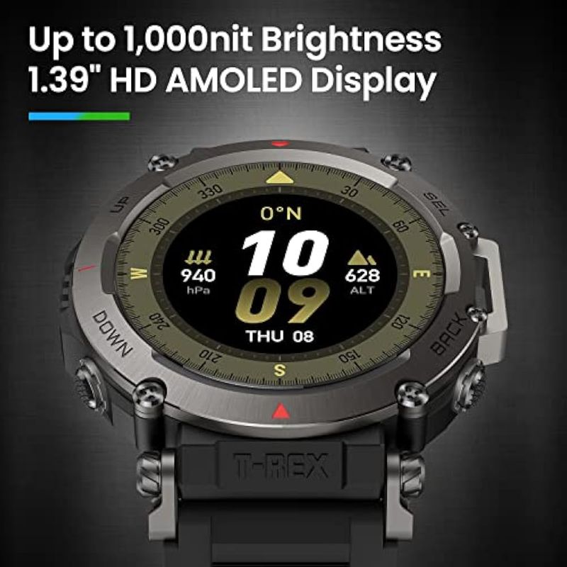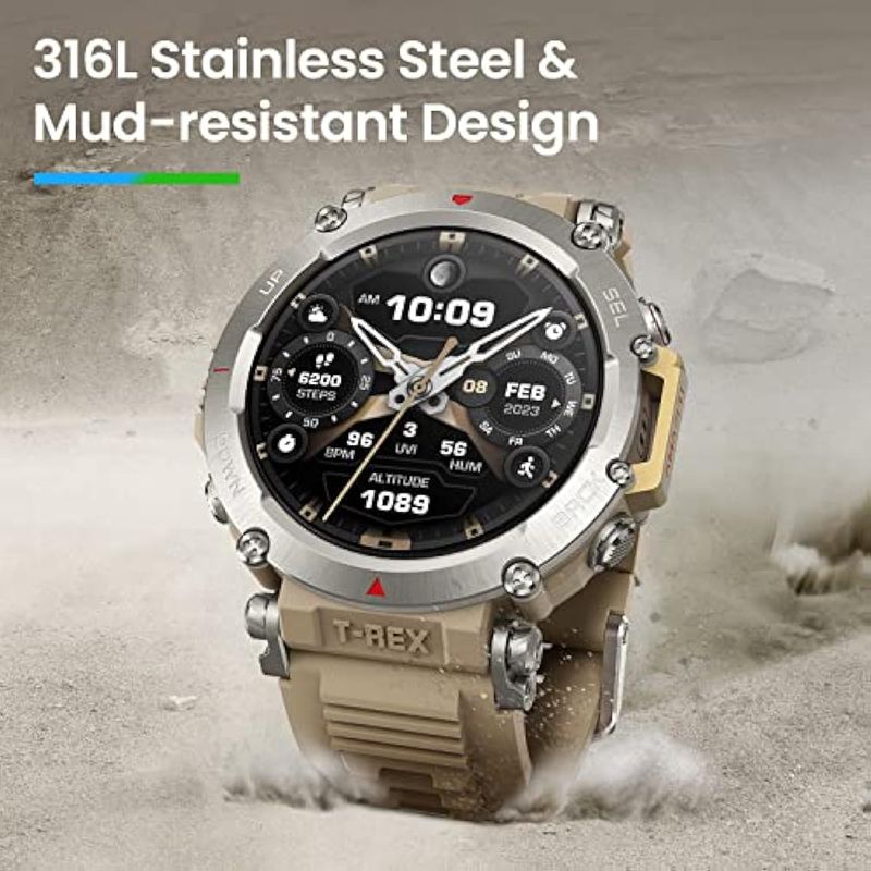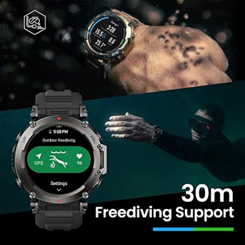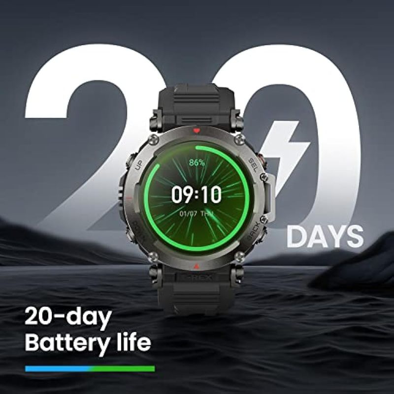 Amazfit T-Rex - Reloj ultra inteligente para hombre, batería de 20 días, apnea de 98.4 ft, GPS de