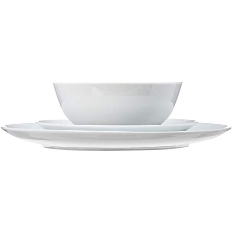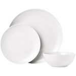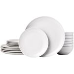 Amazon Basics - Juego de vajilla de 18 piezas con platos y tazones, servicio para 6 personas, blanco