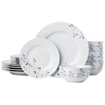 Amazon Basics - Juego de vajilla de 18 piezas con platos y tazones, servicio para 6 personas, blanco
