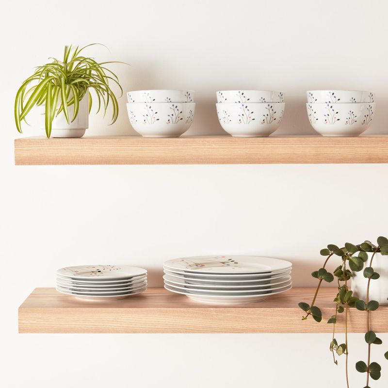 HOGARBAZARUTENSILIOS DE COCINAAmazon Basics - Juego de vajilla de 18 piezas con platos y tazones, servicio para 6 personas, blanco