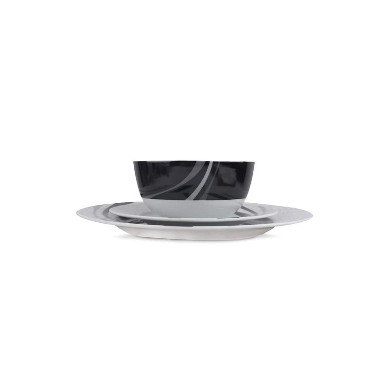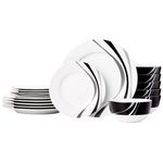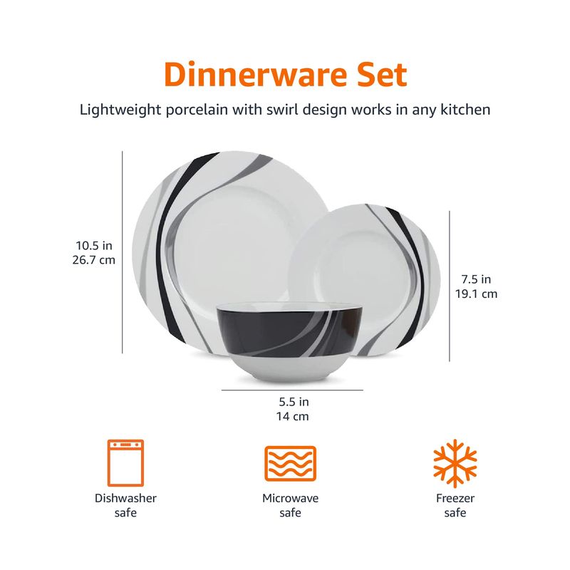 Amazon Basics - Juego de vajilla de 18 piezas con platos y tazones, servicio para 6 personas, blanco