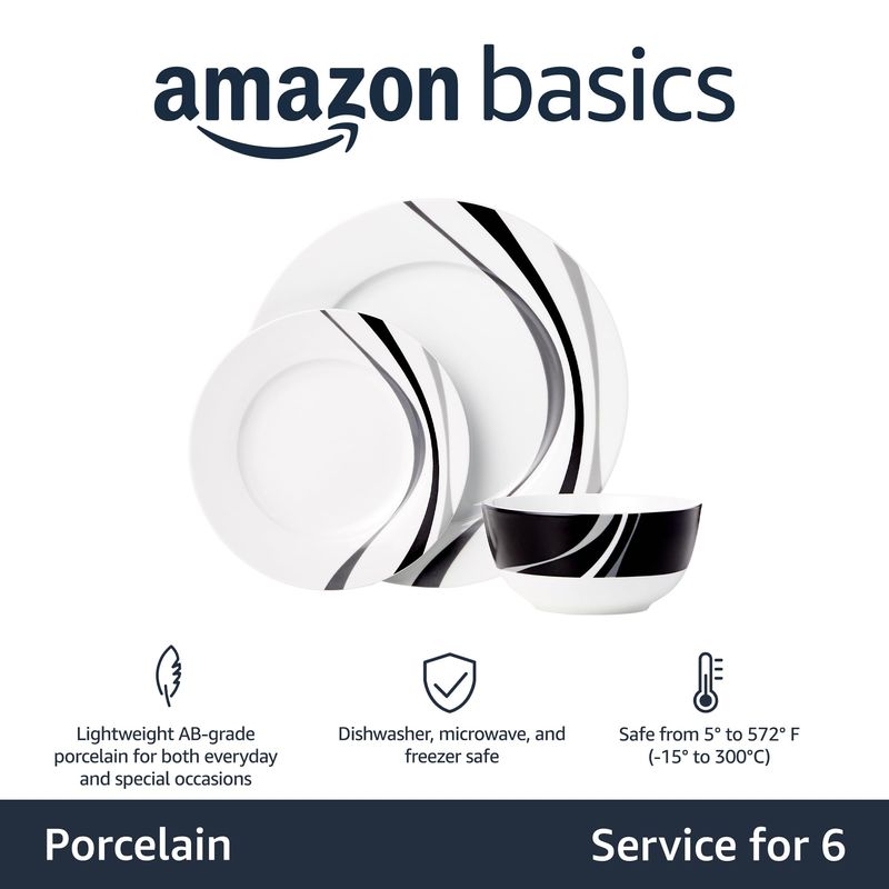 HOGARBAZARUTENSILIOS DE COCINAAmazon Basics - Juego de vajilla de 18 piezas con platos y tazones, servicio para 6 personas, blanco