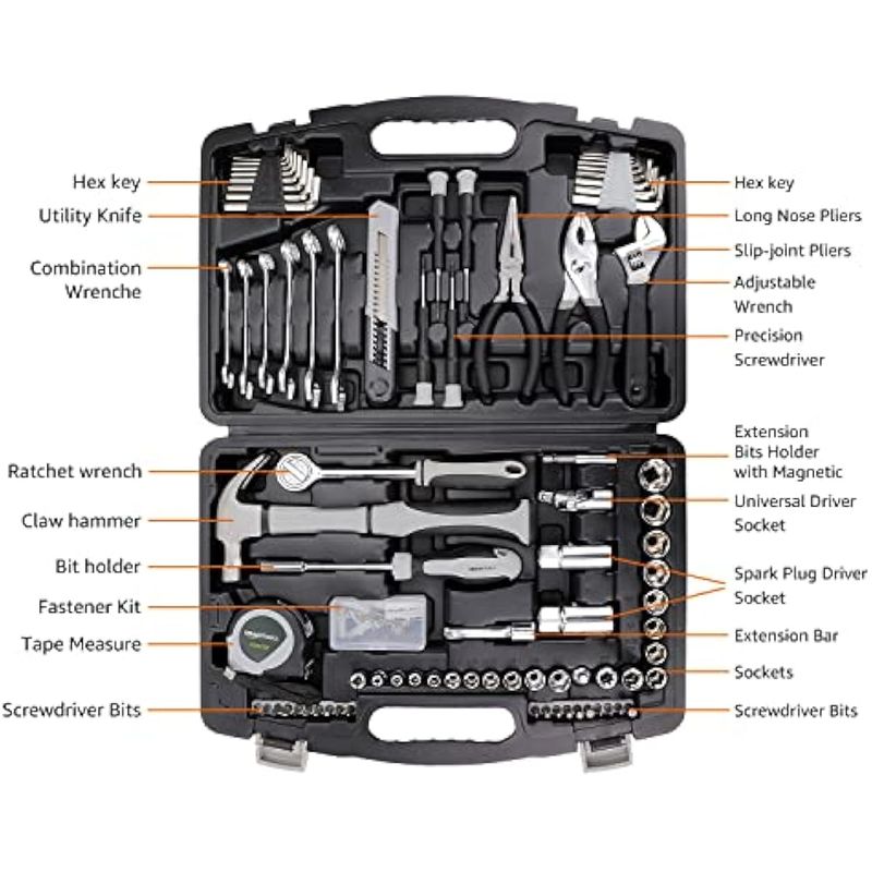 HERRAMIENTASHERRAMIENTAS MANUALESAmazon Basics - Kit de herramientas manuales para reparación de hogar y mecánico de 131 piezas