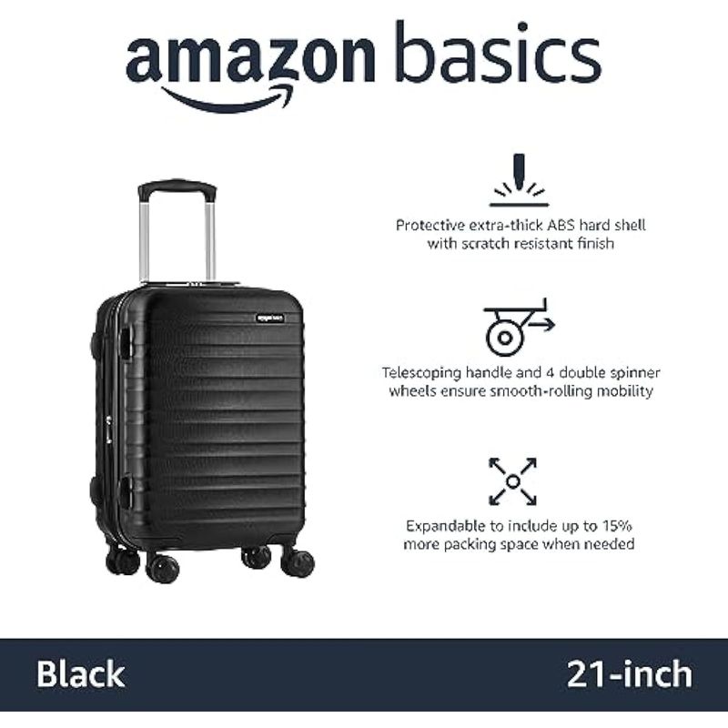 Amazon Basics - Maleta rígida, equipaje de mano y ampliable con ruedas, Negro -
