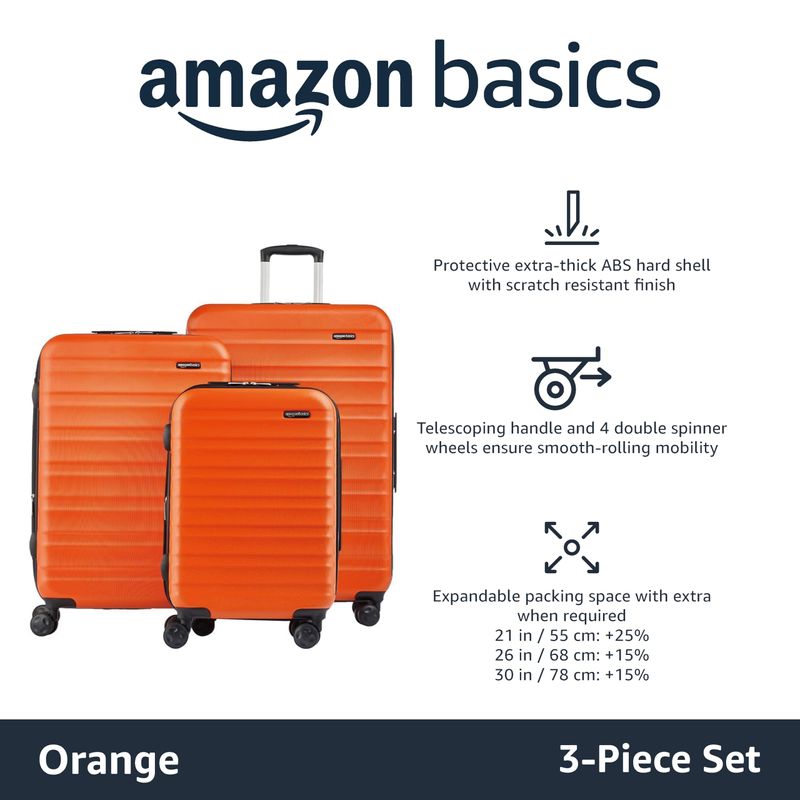 EQUIPAJEVALIJASAmazon Basics - Maleta rígida, equipaje de mano y ampliable con ruedas, Negro -
