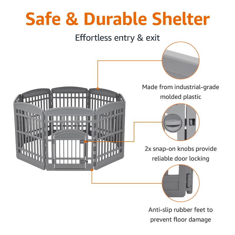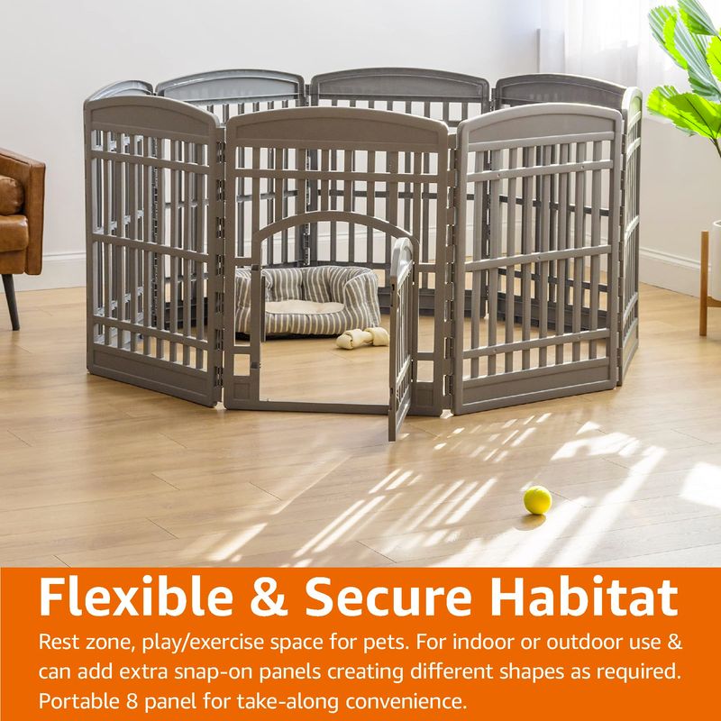 MASCOTASPERROSAccesorios para PerrosAmazon Basics Cerca de plástico para bolígrafos de 8 paneles con puerta, 59 x 58 x 28 pulgadas,