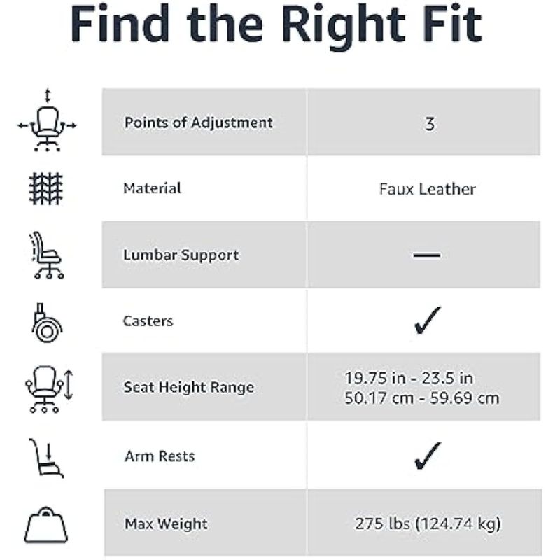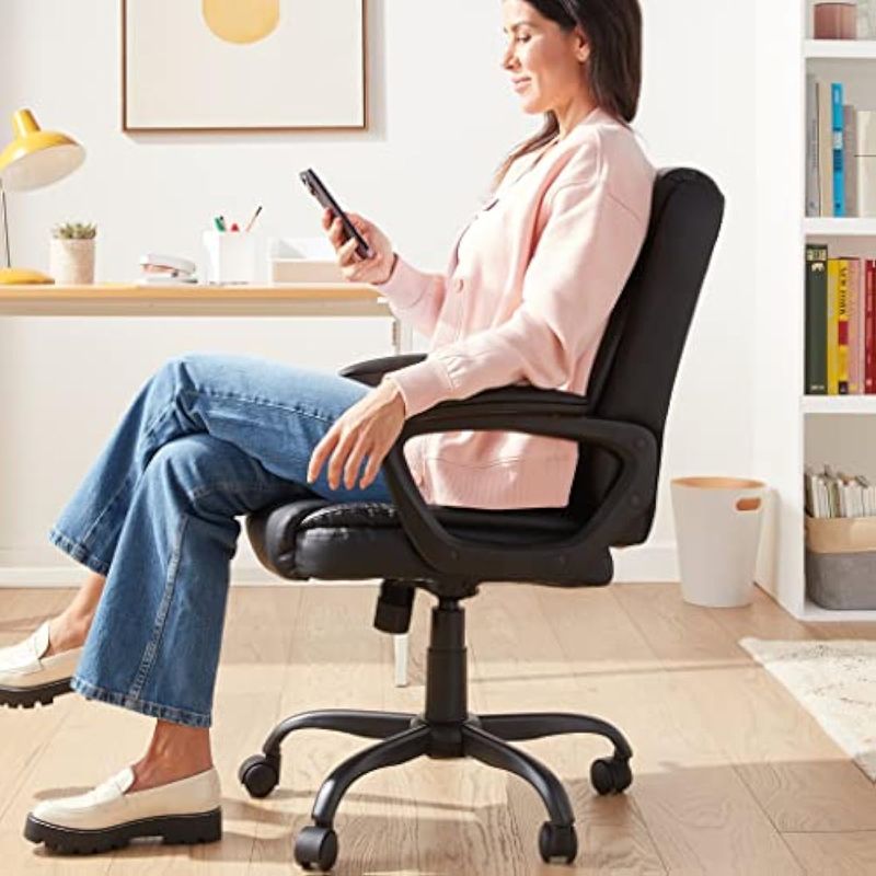 Amazon Basics Classic Puresoft - Silla de escritorio acolchada de poliuretano con respaldo medio y