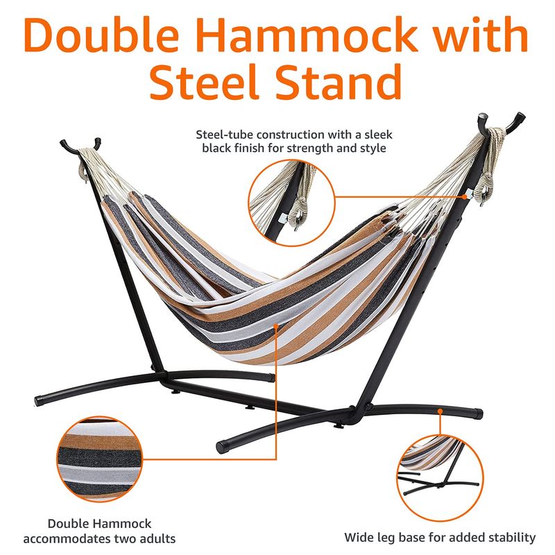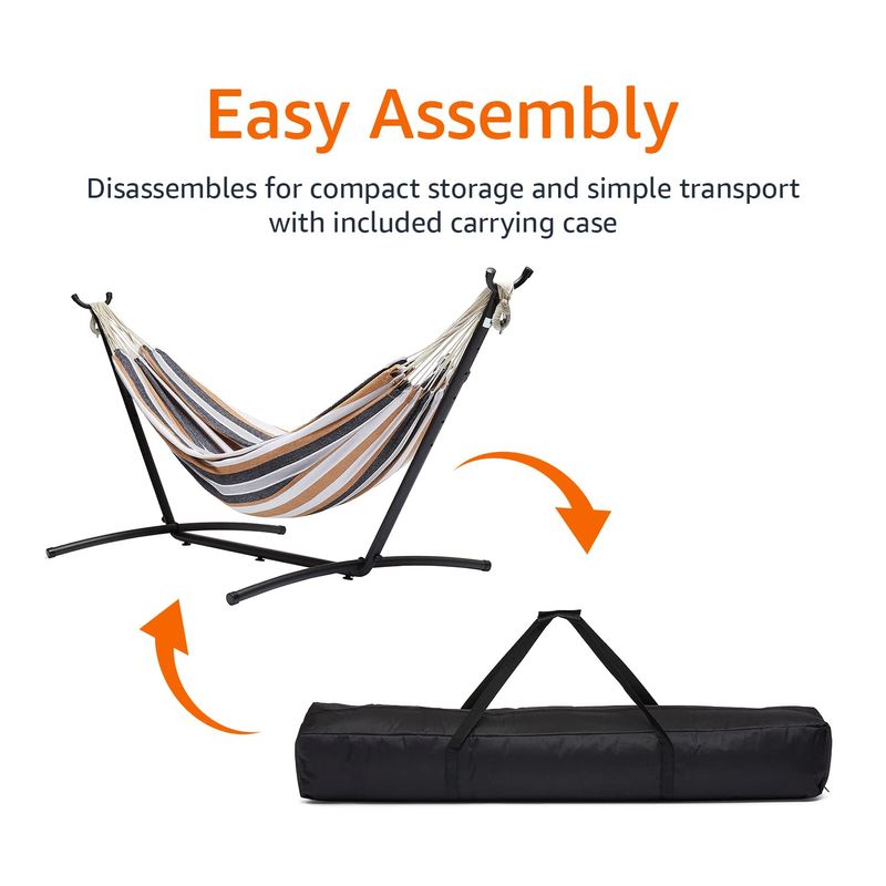 Amazon Basics Hamaca doble con soporte de acero de 9 pies que ahorra espacio y funda de transporte,
