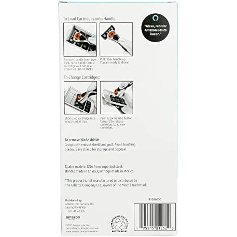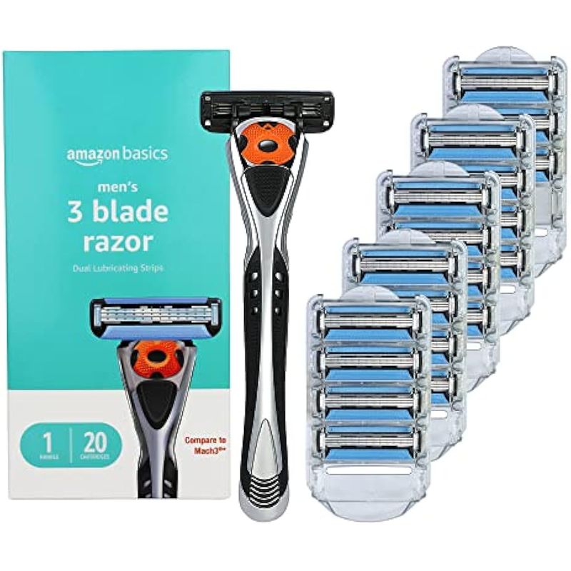 BELLEZA Y SALUDCUIDADO PERSONALAFEITADORAS Y CORTACABELLOSAmazon Basics Maquinilla de afeitar de esfera de movimiento de 3 cuchillas para hombres con doble