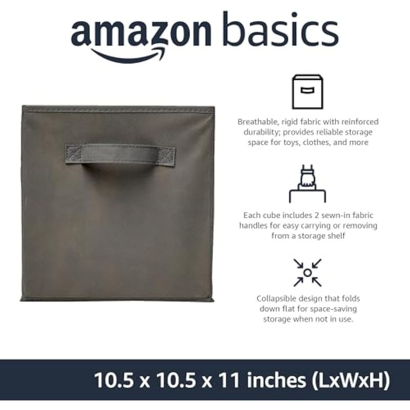 Amazon Basics Organizador de cubos de almacenamiento de tela plegable con asas, color gris, paquete