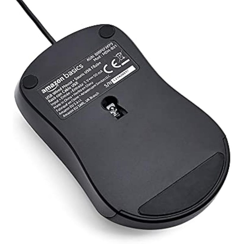 AMAZON BASICS RATóN CON CABLE USB DE 3 BOTONES - ESTáNDAR, NEGRO