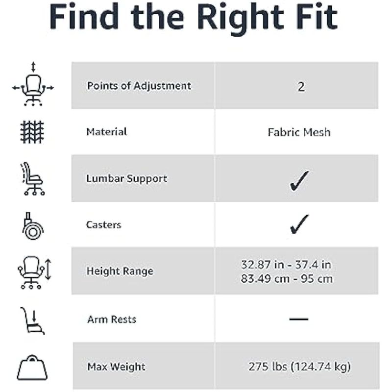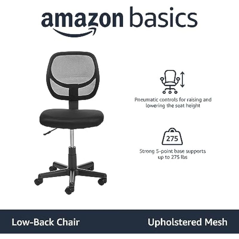 Amazon Basics Respaldo bajo, malla tapizada, ajustable, silla giratoria de escritorio de oficina