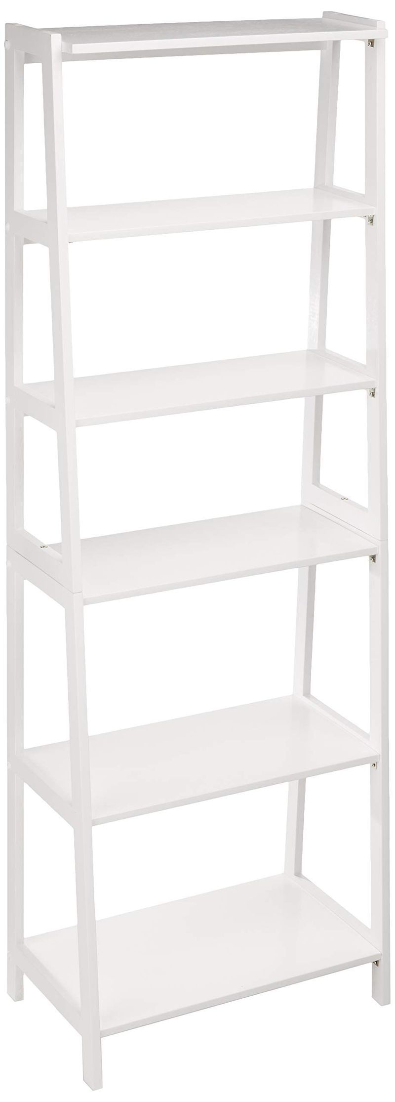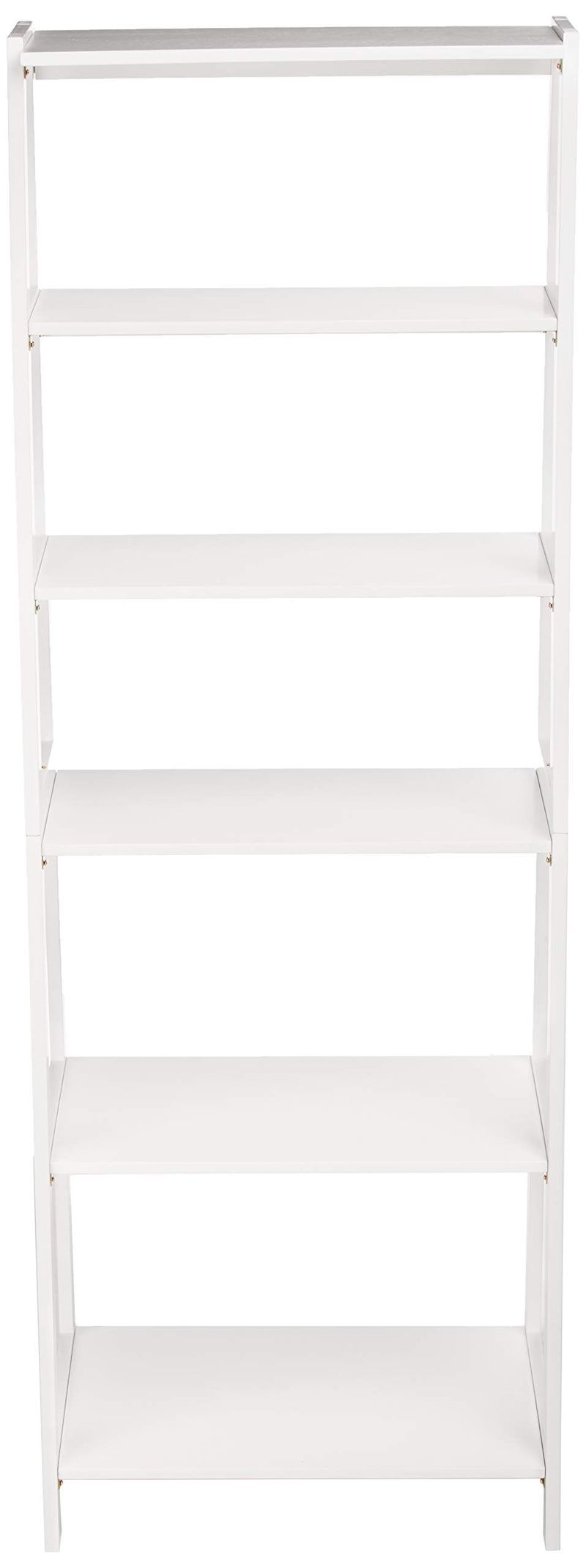 Amazon Basics Rubberwood - Estantería con 5 estantes, color blanco, 15.03 pulgadas de profundidad x