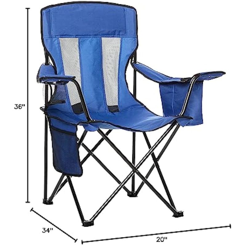 Silla de camping portátil con paneles de tela de malla de poliéster para ventilación de refrigeración; elegante color azul