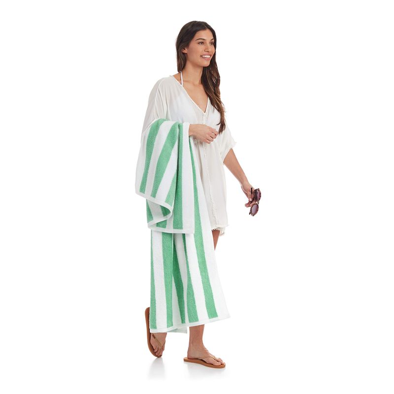Amazon Basics Toalla de playa Cabana Stripe - Paquete de 2, azul marino