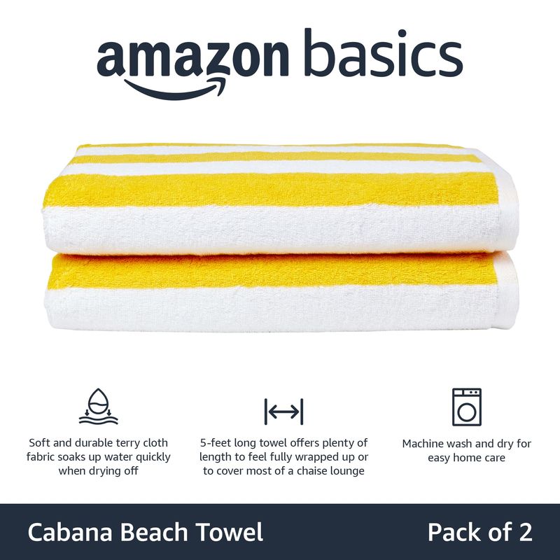 AMAZON BASICS TOALLA DE PLAYA CABANA STRIPE - PAQUETE DE 2, AZUL MARINO