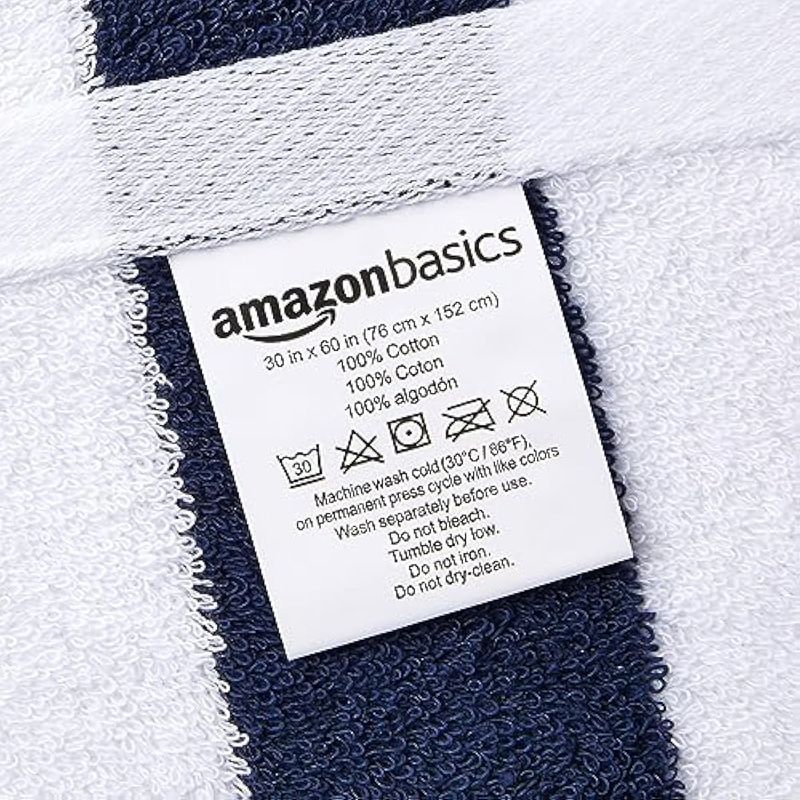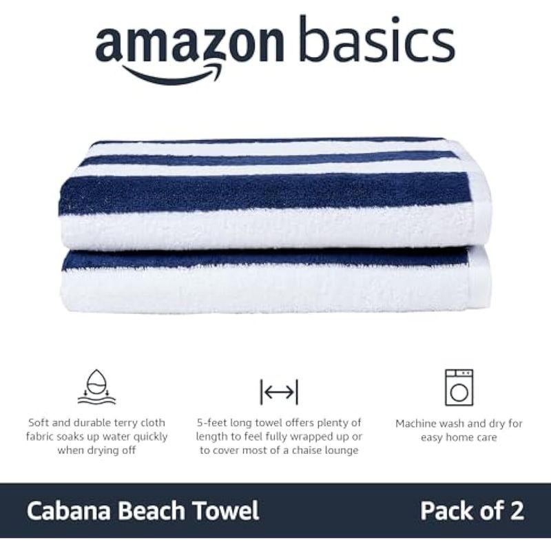 HOGARBLANQUERIATOALLASAmazon Basics Toalla de playa Cabana Stripe - Paquete de 2, azul marino