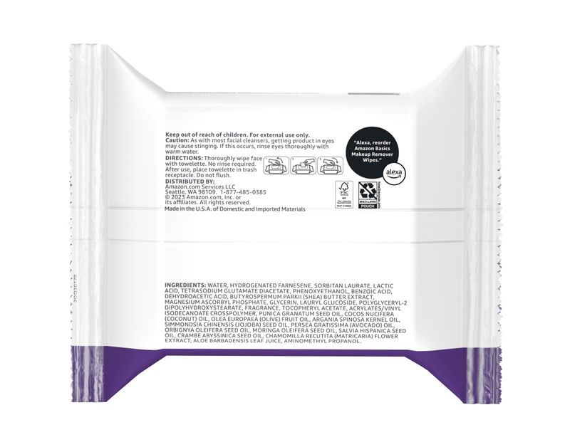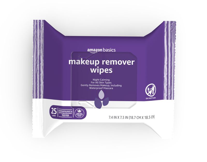 Amazon Basics Toallitas desmaquillantes, limpieza suave, dermatológicamente probadas, calmantes