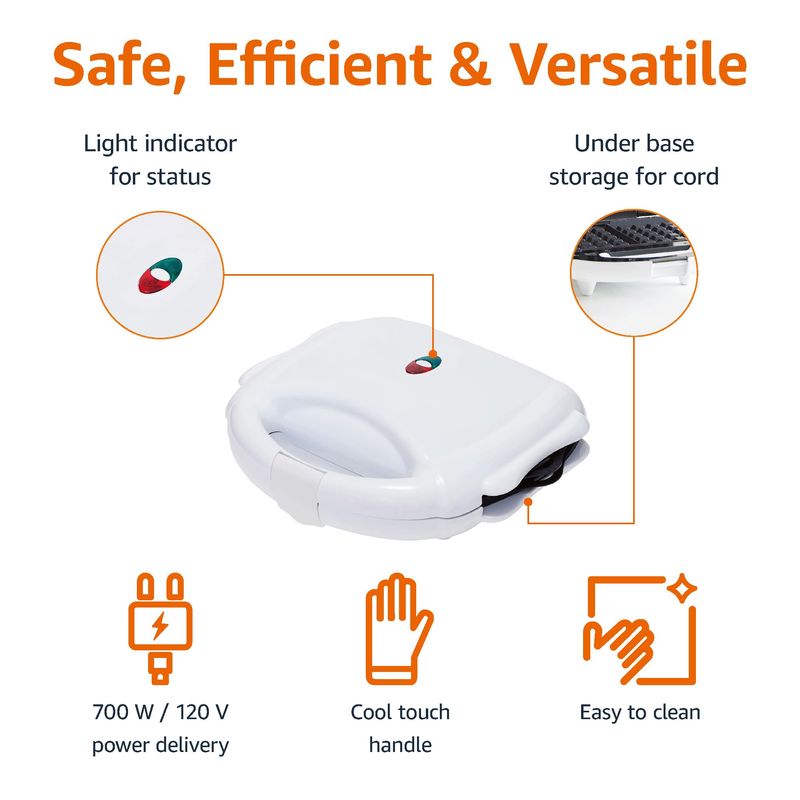 Amazon Basics Waffle, Sandwichera y Parrilla 3 en 1 Negro, 700W