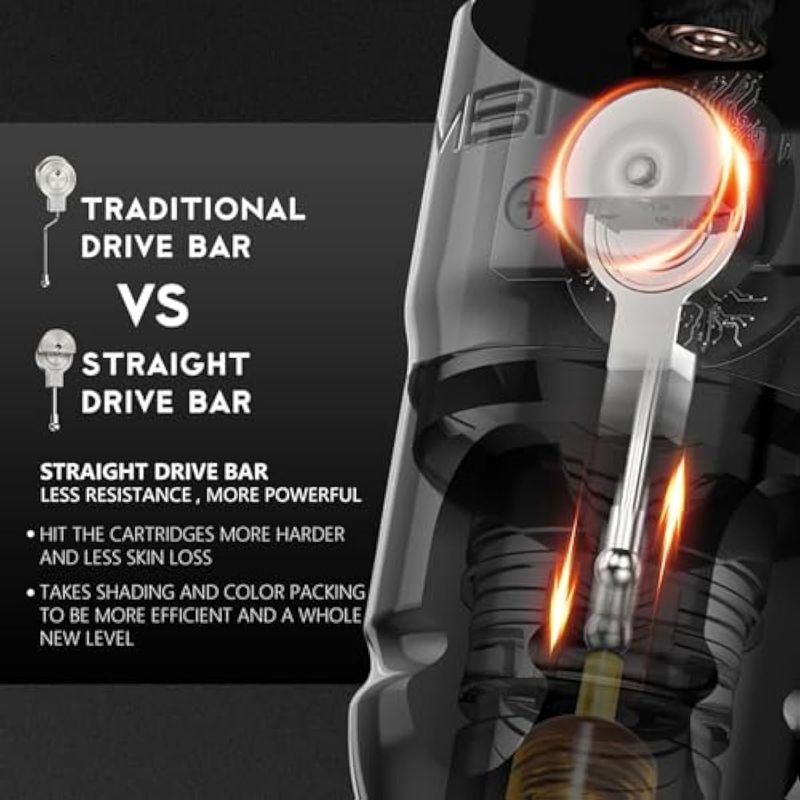 Motor sin escobillas: La pluma del tatuaje accionada por el motor sin escobillas personalizado, el motor sin escobillas prolonga en gran medida la vida útil de la máquina, y es más potente que el motor sin núcleo, la unidad con baja vibración y menos ruido; Velocidad del motor 8V 10000RPM, voltaje de trabajo 3.7V. Bajo voltaje con mayor velocidad y par, y conduce fácilmente cualquier marca de cartuchos de aguja de tatuaje.
