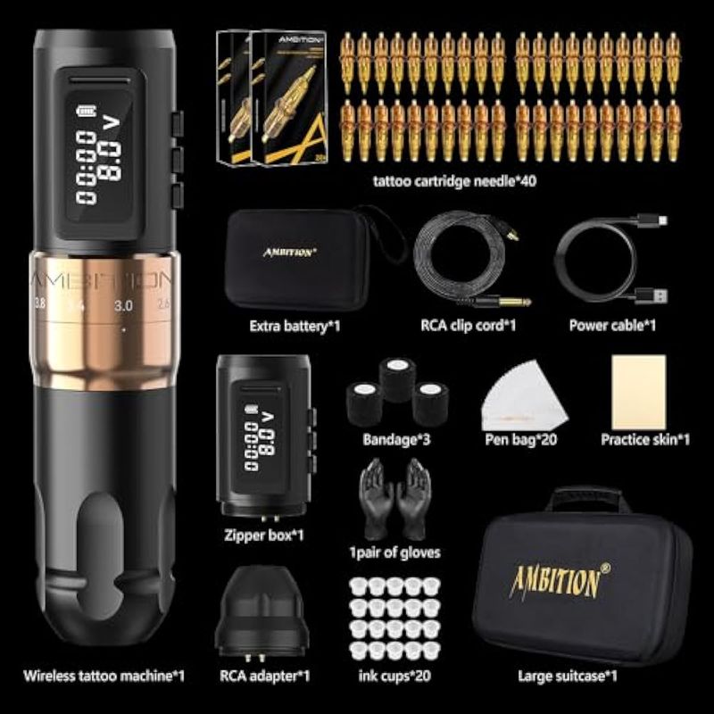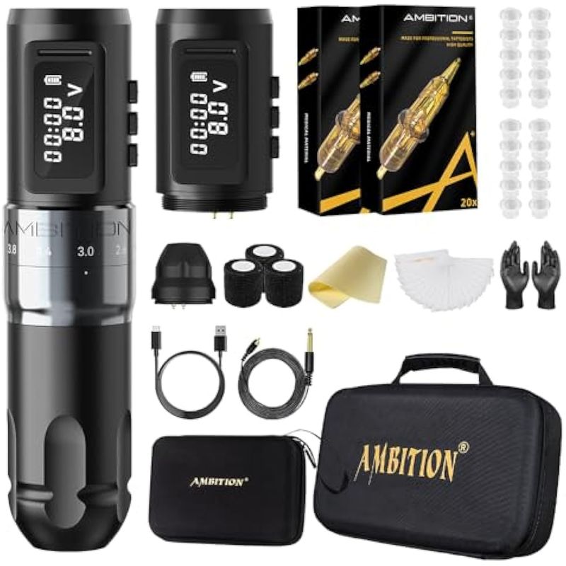 Ambition Mars-U - Kit de máquina de tatuaje inalámbrica con carrera ajustable de 1800 mAh, kit de